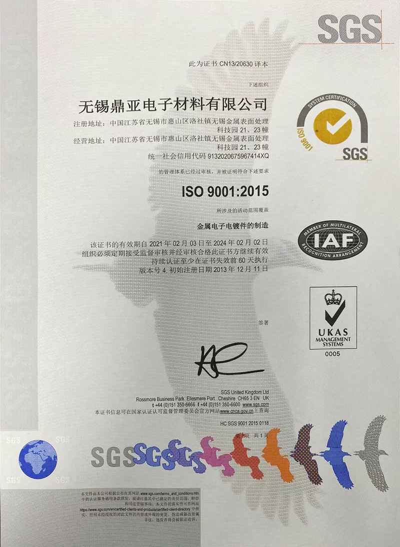 ISO 9001:2015认证证书